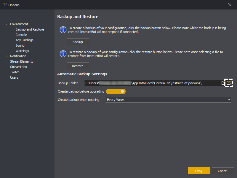 Please note that whilst the backup is occurring, InstructBot will not respond if connected.